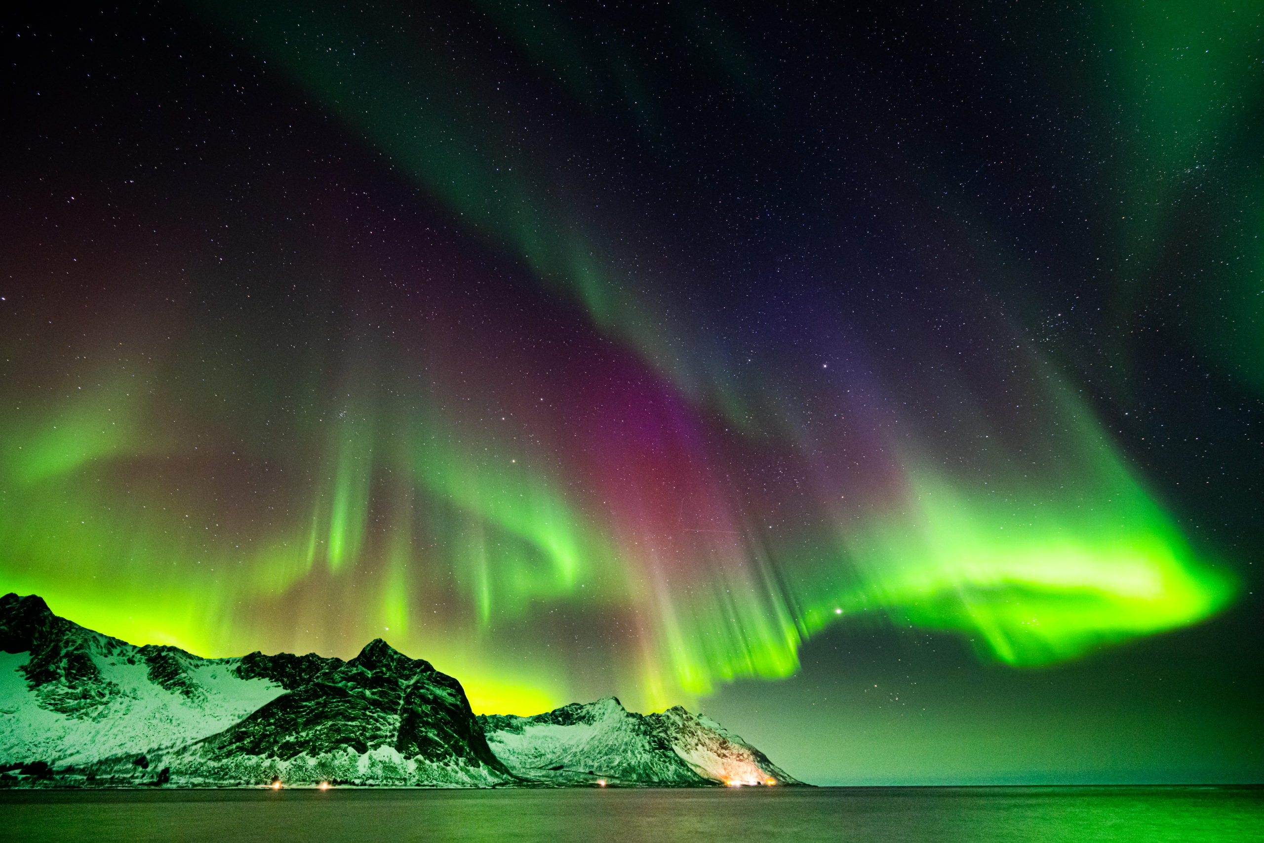 Mars 2025, Sonya, Norvège. Après une longue attente glacée, les aurores ondulent enfin entre mer sombre et montagnes enneigées. Fascination immédiate, et surprise de voir tant de couleurs, presque invisibles à l’œil nu, révélées par l’objectif.